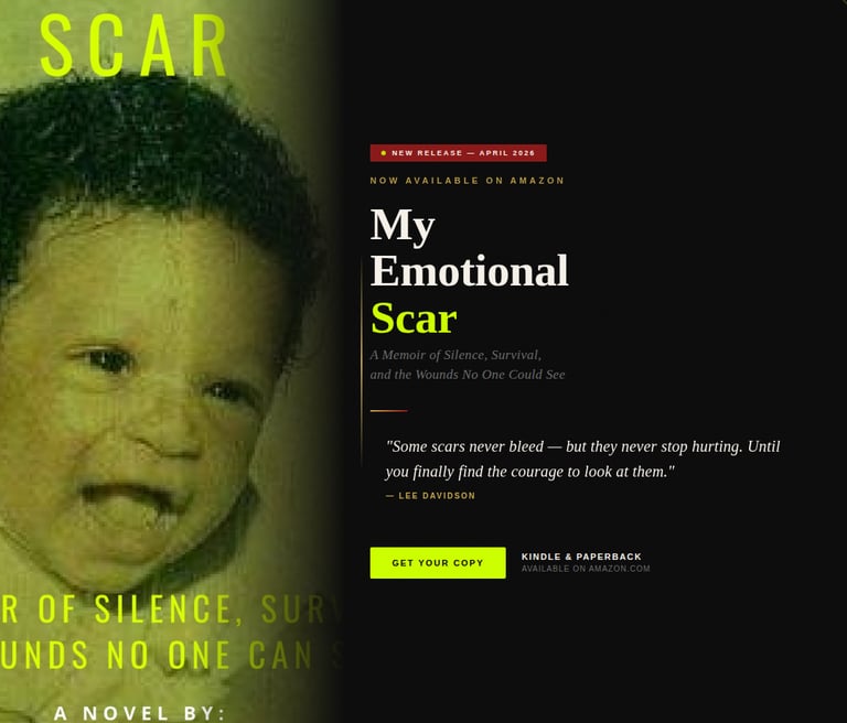 I spent years carrying wounds no one could see and even longer pretending they weren't there. I'm Lee Davidson, a survivor of emotional abuse in a blended family, and I finally stopped staying silent. My debut memoir, My Emotional Scar, was written for people who know what it's like to feel invisible in your own home, question whether your pain was valid, or smile through damage no one could name. This book is also for parents who need to be more thoroughly selective about their decisions on who they choose to be their coparent and expose their children to. Available now on Amazon · Kindle & Paperback